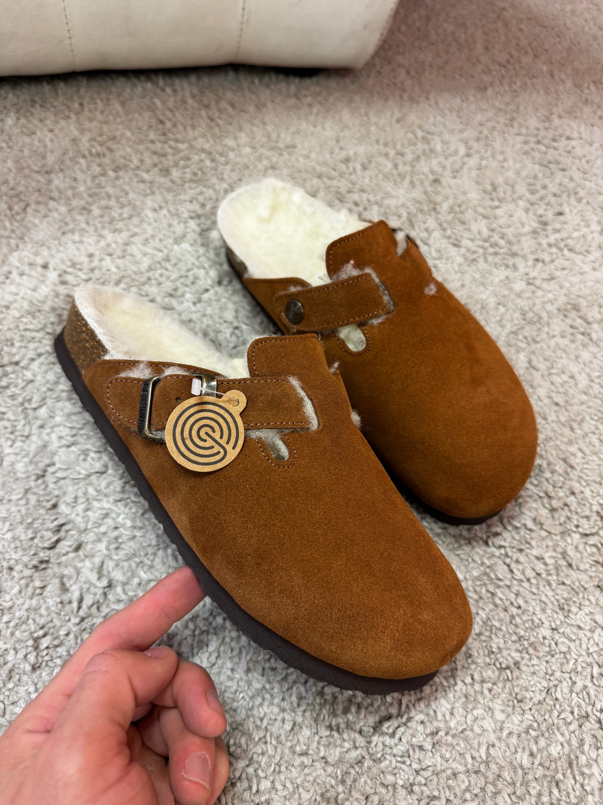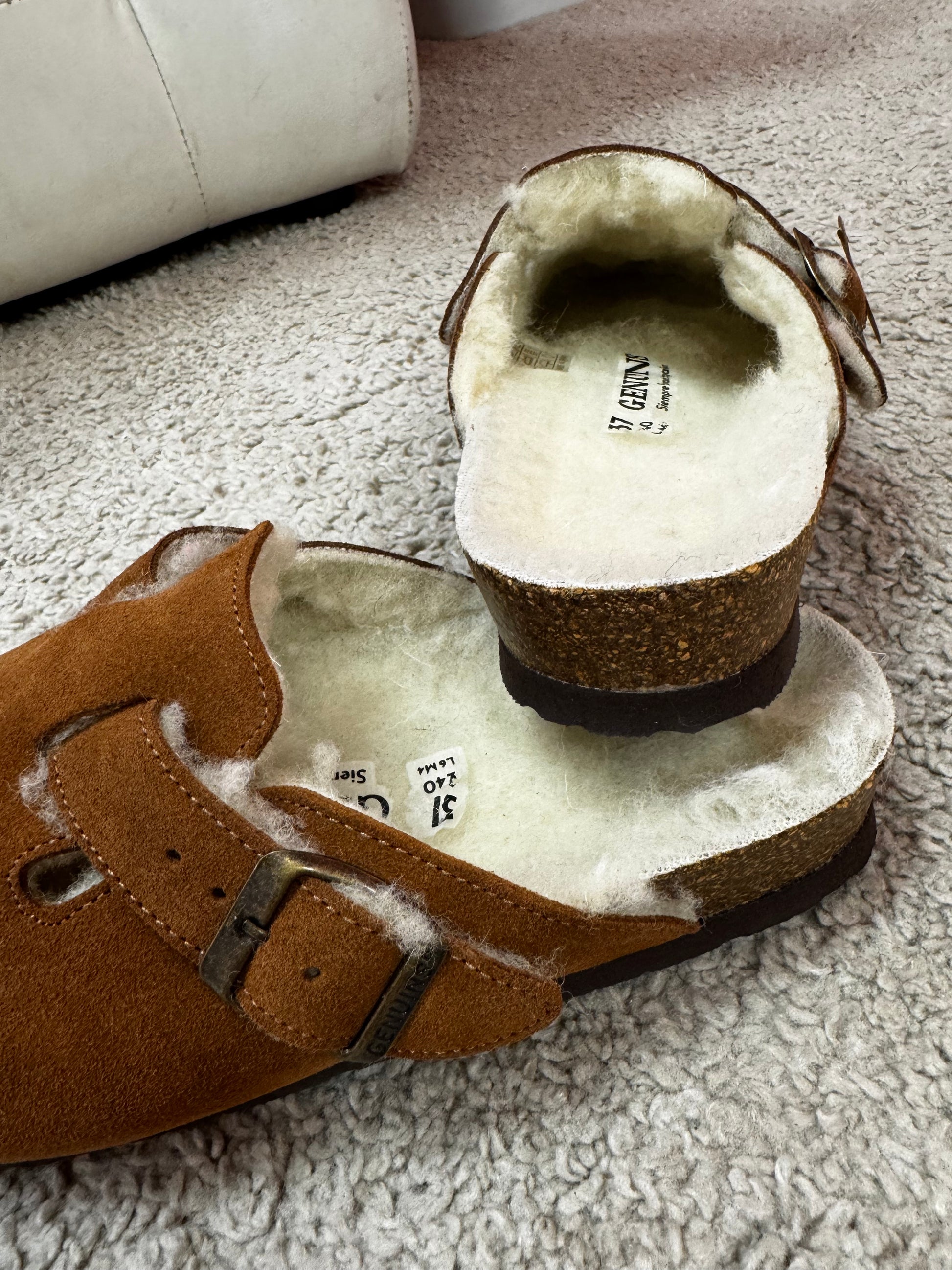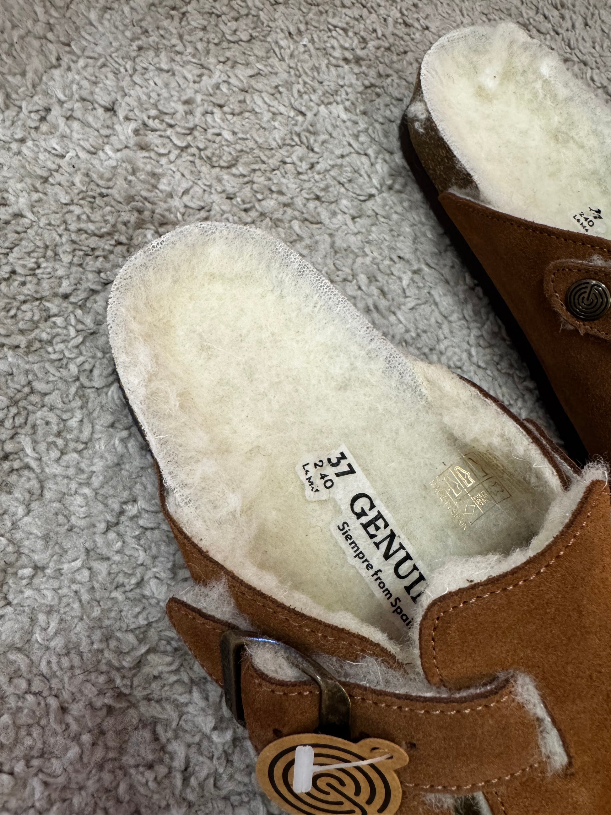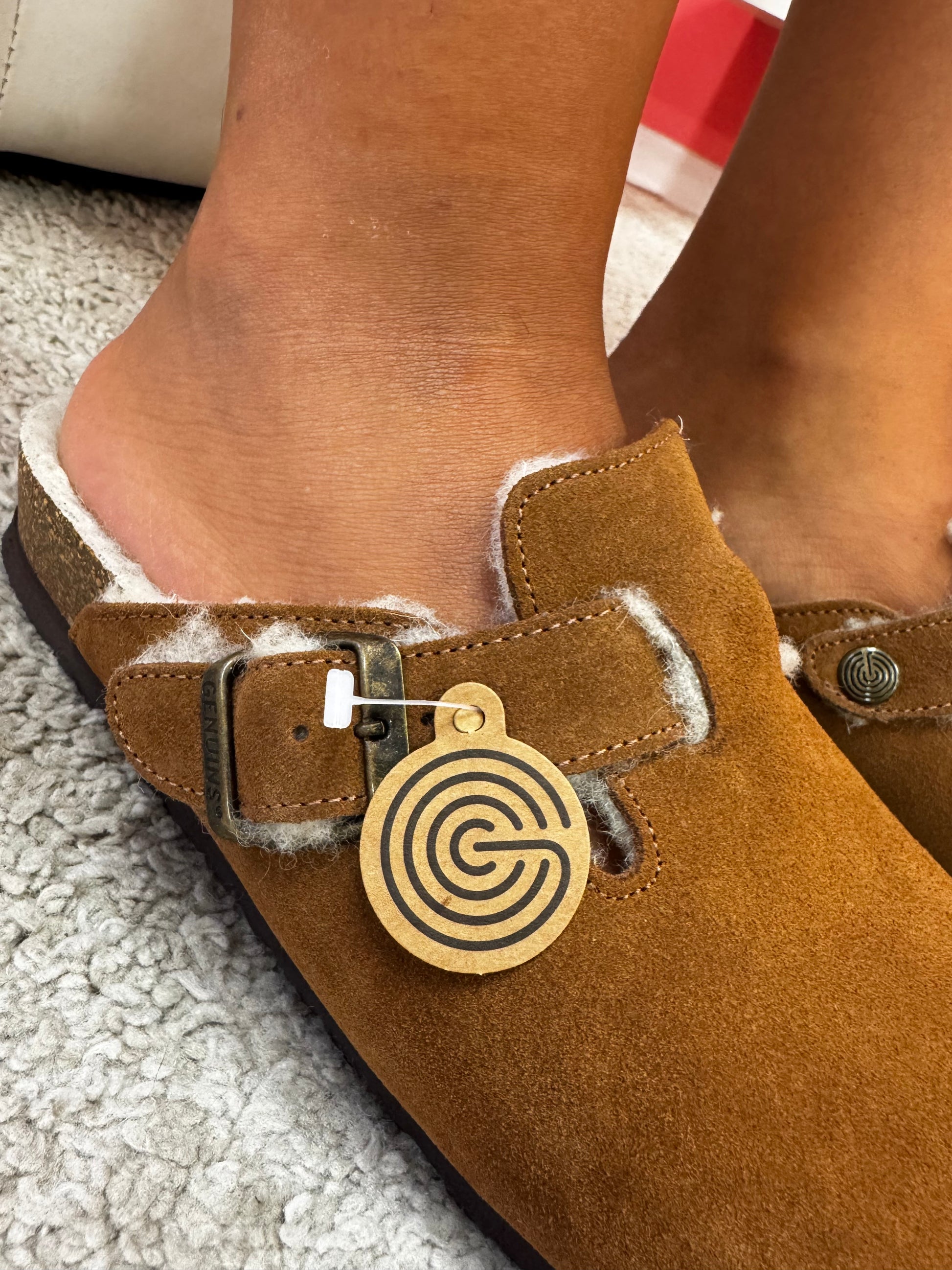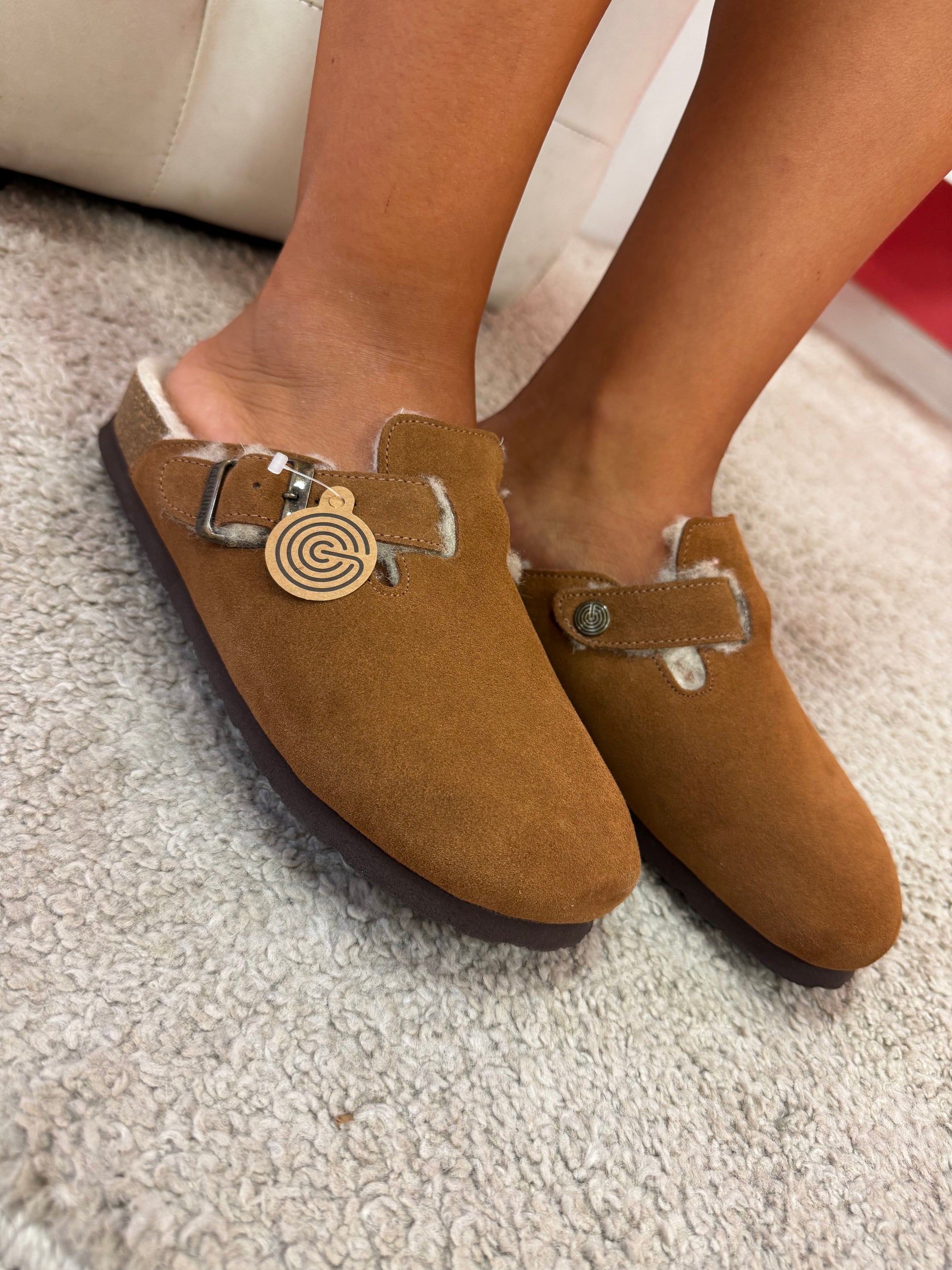 Sabot Genuins con pelo color cuoio